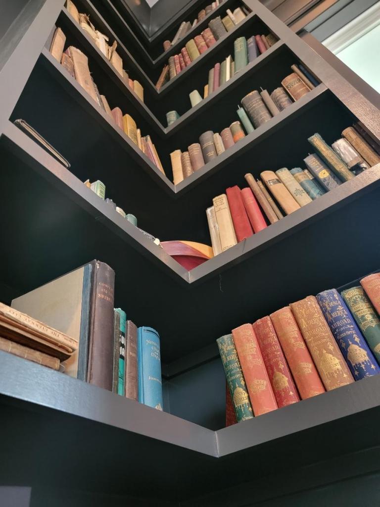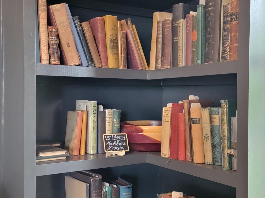 On the other side of the bookish corner there is a shelf dedicated to just books owned by Madeline L’Engle. I was so excited about this shelf! I love Madeline L’Engle’s writing, and to get to see all these books that had been ones she read was very neat. Seeing the book collections of well read writers always makes me want to build and gorw mine all the more.