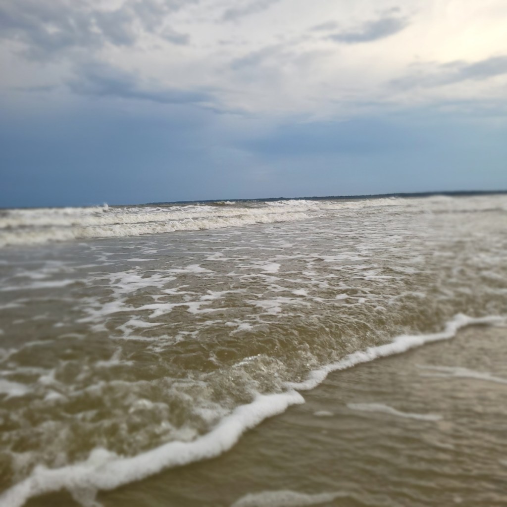 But there is also an order to the chaos. Under the tumult and crashing, there is pattern and rhythm. Waves spill over each other like water poured out of a glass. The tide is lined with shining white. The bubbles group into patterns on the surface of the water. The water weaves over shells, making marks in the sand like a bird in flight. It smooths, it flattens, and it returns to order.
